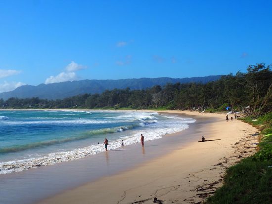 An der im Osten gelegenen „Windward Coast“ schlagen wir am „Campground Malaekahana“ unser Zelt auf und verbringen den Nachmittag bei Sonnenschein am gleichnamigen Strand... sehr schöner, langer und ruhiger Beach!