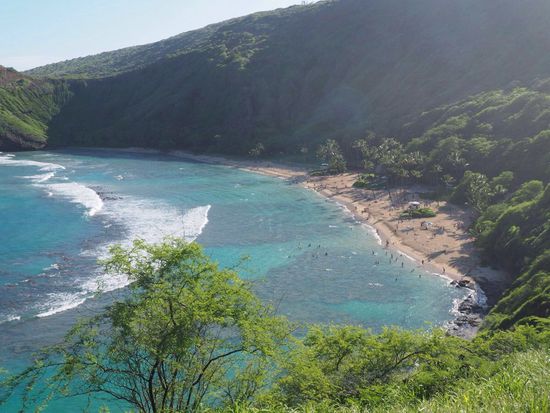 Wir schließen den Tag in der wunderschönen Hanauma Bay – der perfekte Schnorchelspot mit einem Korallenriff direkt in der Bucht und vielen Fischen und Meeresschildkröten... leider ist strömungsbedingt keine gute Sicht, sodass wir nicht wirklich viel von der Unterwasserwelt sehen