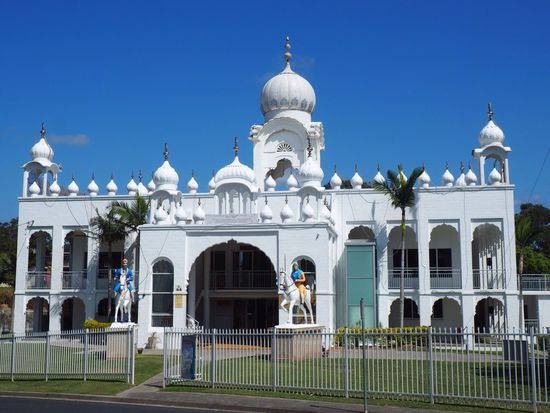 Einige Kilometer vor der großen Stadt Coffs Harbour übernachten wir in Woolgoolga – in dem schönen Ferienort haben sich viele Inder niedergelassen und sogar einen Tempel erbaut... unerwarteter Anblick!