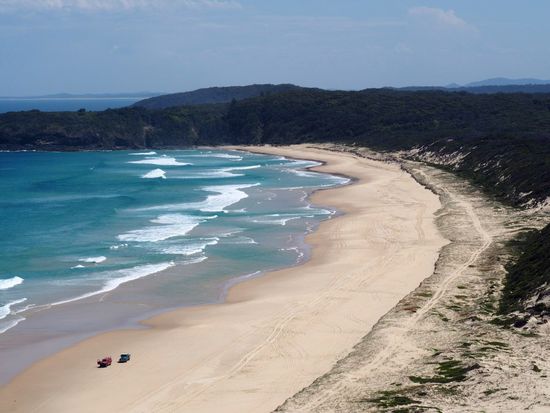 Der Abstecher am nächsten Morgen zu „Seal Rocks“ lohnt sich. Vom Sugar Loaf Piont Leuchtturm genießen wir einen herrlichen Blick und können direkt am Strand Delphine beobachten... endlich