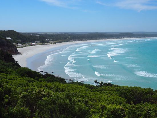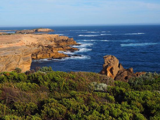 Wir verlassen nun South Australia und erreichen gegen Mittag „Cape Bridgewater“ im Bundesstaat Victoria. Das Kap ist mit den 120 m hohen Felsklipppen einer der höchsten Punkte der südlichen Küste. Wir wandern zum Aussichtspukt „Stoney Hill“ – leider ist die Walsaison hier vorüber, aber es lohnt für einen großartigen Blick auf den „Bridgewater Bay Beach“... leider ist es noch zu kalt zum Baden!