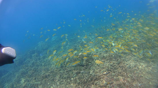 Daher haben wir uns gestern fuer eine kleine Tour entschieden mit der direkt im Resort ansaessigen Tauchschule. Und das Tolle: wir waren die einzigen beiden mitreis(s)enden Tauchenden. Da meine bessere Haelfte Scuba Diving discovern wollte, ging's an die Westseite ins suedliche Ende der Bucht von Mae Haat zum Three Rock. Da wird man bereits in wenigen Metern Tiefe ringsum einen kleinen vorgelagerten Felsen von einer umwerfenden Unterwasserwelt empfangen.