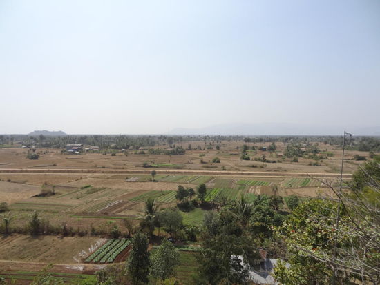 Noch schnell die dringend sauber benötigte Wäsche abgegeben und schon geht's mit dem Moped los um die Gegend zu erkunden.. Zuerst zu Stromschnellen, die keine Stromschnellen waren (davor wurde ein großer Damm errichtet), dann zur Phnom Chhnork Höhle. Schon der Weg dorthin war ein Abenteuer, denn abseits der großen Hauptstraße beginnt hier eine rote, staubige Schlaglochpiste.
