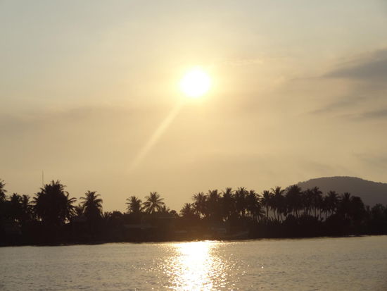 Am Abend gab's noch eine 2stündige Sonnenuntergangsflussfahrt mit anschließendem Glühwürmchen-gucken (weswegen ich es eigentlich machen wollte). Beim lustigsten Tourbooker ganz Asiens gebucht, wurden wir mit dem eigenen Moped zum Schiffsanleger gebracht (statt uns selbst fahren zu lassen, damit wir nicht zurück gehen müssen ). Nach dreiminütiger Diskussion bekam auch noch jeder sein versprochenes Gratisbier und los gings im Schneckentempo. Glühwürmchen sahen wir allerdings fast keine