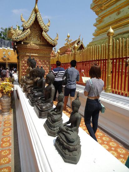 Nach der gesundheitlich bedingten Entscheidung die luxuriöse Flugvariante statt der 2 1/2 Tages-Bootsreise nach Chiang Mai zu nehmen, kam ich ausnahmsweise äußerst entspannt nach nur einer Stunde Flugzeit in der 'neuen' Stadt an. Meine Hoffnung, dass hier weniger los sein würde und ein Anstehen an der Immigration somit hinfällig wäre wurde jedoch bald enttäuscht. Auch hier lange Schlangen und 30 Minuten Warten würden es wohl werden...jaaaa, wenn da nicht der Familienjoker wäre! Noch immer mit Marsela und Daniel aus Deutschland mit 2jährigem Sohn unterwegs, konnte ich diesmal einen überaus positiven Nutzen daraus ziehen! Für den blonden Engel öffnen sich hier nämlich schon mal schnell eigene Familienschalter und als 'Nanny' muss ich doch natürlich auch mit - ab jetzt geb ich mich übrigens immer als Schwangere aus, für die gilt nämlich das Gleiche. Das Bauch-halten hab ich so im letzten Monat zumindest nicht sinnlos perfektioniert