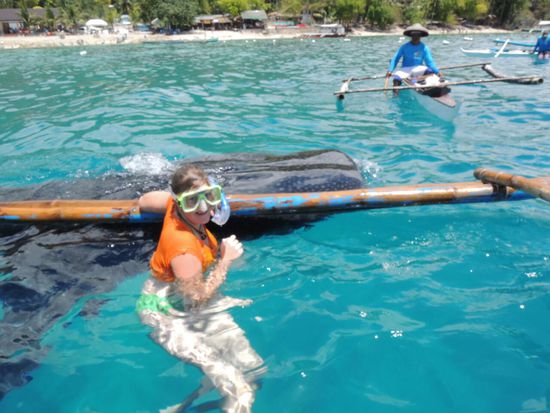 Am selben Nachmittag verließen wir Oslob wieder (und blieben damit schon länger als die meisten, die nur für die 30 Minuten Schwimmen kommen und sofort weiterfahren). Nach Jeepney, Mittagessen in der Stadt (extra für BBQ hier her gefahren, jemand gefragt ob es auch tagsüber existiert - Lüge #1), Fußmarsch (weil uns das Jeepney nicht wie versprochen am Hafen rausließ - Lüge # 2), Warten am Hafen, Autofähre (Lüge #3 - es gäbe nur diese Fähre... mhm...), Jeepneyfahrt (Tricycle wollte 200 - Lüge #4, üblich ist maximal die Hälfte, der war sowieso dreist und liefert gleich noch Lüge #5-mit dem Jeepney kommen wir nicht wohin wir wollen...Nein, aber 500 Meter davor..) und erneuter, diesmal wieder mühsamer Hostelsuche erreichten wir schließlich die scheinbar einzige Backpackerunterkunft, die ich vorher aus dem Internet gesucht hatte. Harold's Mansion bot uns so für 250 Peso inklusive Frühstück ein Bett im Dormitory und gleichzeitig mir die billige Weiterreisemöglichkeit für 250 Peso nach Apo Island, der sogenannten Schildkröteninsel. Auch hier verirren sich hauptsächlich Tagesgäste und eben wieder mal ich, davon aber mehr im nächsten Kapitel!
