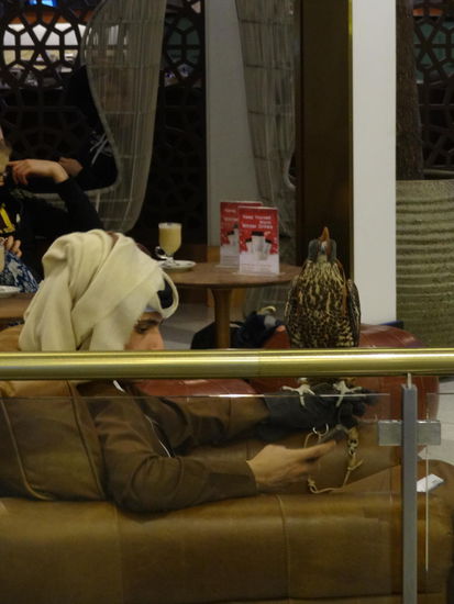Der neue Flughafen in Doha ist ein Erlebnis für sich, schon beim Anflug weiß man gar nicht wohin zuerst sehen, man bekommt den Eindruck, das ganze Land strahlt und leuchtet und blinkt. Am Flughafen äußerst hilfsbereites Personal (von dem es übrigens massenhaft gibt..), Scheichs, Falken in Cafés, Ruheräume (leider weiß offenbar nicht jeder was quiet bedeutet...), eisig kalte Klimaanlage (brrrrrr), Golfcars zum Transport der Privilegierten in der riiiiiiesigen Anlage, nach der uns dann schon die Füße weh taten vom vielen Laufen!