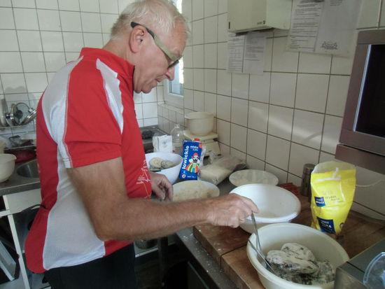 Wir sind begierig, unsere mitgebrachten Pilze zu probieren. Wir dürfen in die Küche, alle Geräte stehen uns zur Verfügung, für Joschka und Erich gibt es kein Halten mehr. Erich paniert die schönsten Stücke wie Wiener Schnitzel und brät sie anschließend, Joschka zaubert ein Pilzragout, der Koch liefert die zugehörigen Kartoffeln, Butter und Gewürze