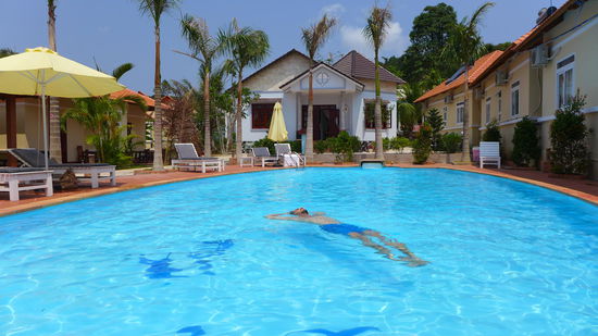 Unsere bisherigen Insel- und Stranderfahrungen (Thailand, Kambodscha) haben etwas anderes erhoffen lassen, denn Budgetunterkünfte sind hier allgemein schwer und in Strandlage unmöglich zu bekommen. Man muss dazusagen, dass angesichts unserer Erfahrungen der letzten Tage unser Anspruch vor allem an Sauberkeit etwas gestiegen ist (Fenster für Tageslicht und Frischluft - ein Muss). Nach einem erschöpfenden und ernüchternden Marsch am Strand entlang, sind wir dieses Mal auf Nummer sicher gegangen und haben uns zum Wunden lecken im Paradise Resort eingenistet - Nicht direkt am Strand, aber mit Pool!