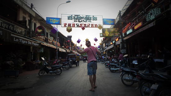 Zur Orientierung haben wir uns gleich mal zwei Fahrräder ausgeliehen und Siem Reap erkundet. Unseren eigentlichen Versuch, zum Tonle Sap See zu fahren, mussten wir hitzebedingt nach einigen Kilometern abbrechen (37 Grad) und haben uns stattdessen auf dem Psar Chaa Markt umgeschaut. Da gibts wirklich alles zu super Preisen, wie wohl fast überall in Südostasien. Es wird einem ja schon immer vorher von Freunden gesagt, die schon mal hier irgendwo unterwegs waren, aber es ist wirklich so: Am besten, man fliegt mit einem komplett leeren Rucksack hierher! Das einzige sind Arzneimittel und Sonnencreme, die unbedingt mit müssen, weil alle "westlichen" Produkte um ein vielfaches teurer sind.
