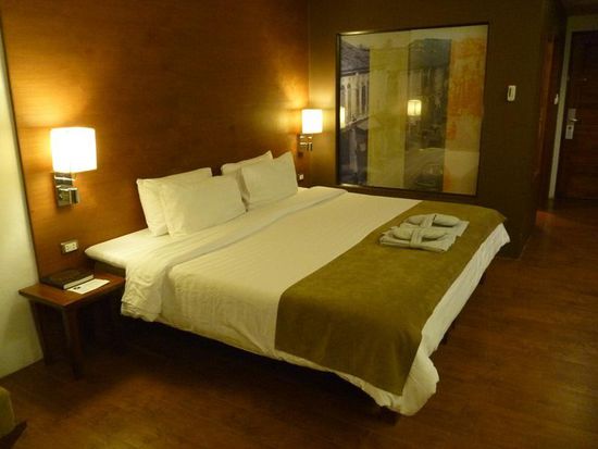 Mittlerweile war es 21:30 Uhr und mein Zimmer weg. Statt mich aber rauszuschmeißen bekam ich ein Upgrade auf eines der wahrscheinlich teuersten ZImmer des Hotels: Grand Deluxe Poolview. Tja, leider kein Meerblick, aber da es sowieso stockdunkel war und ich nur für eine Nacht bleiben würde, war es okay. Das ZImmer war riesig, auf dem Bett hätte ich auch quer schlafen können, und der Pool nur drei Schritte von meiner Veranda entfernt. Zuerst schaltete ich mal die Klimaanlage aus, und nach ein paar Minuten hatte das Zimmer meine bevorzugte Schlaftemperatur erreicht, also ca. 30 Grad.