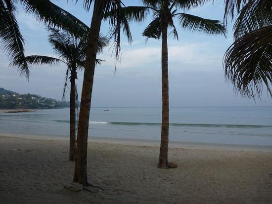 Ich schlief dann auch sehr gut bis ca. 6:30 Uhr. Eine gute Zeit, um mal den Strand zu erkunden. Leider war er nicht ganz so leicht zu finden. Das Kamala Beach Resort ist nämlich ein riesiger verschachtelter Bettenbunker. Ich war noch nicht so oft in einer Unterkunft, in der es wegweisende Schilder gibt (die mussten aber auch sein). Endlich fand ich doch den Strand. Die Sonne ging gerade auf (allerdings woanders, sah aber trotzdem schön aus) und es war warm. Ich hatte es geschafft. Ich war dem Winter entkommen.