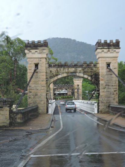 Weiter fahren wir durch viele kleine Küsten- und Urlaubsorte. Dann geht es weiter ins Kangaroo Valley. Enge Straßen, viele Kurven und dichter Wald, leider fängt es an zu regnen, aber landschaftlich wunderschön. Vor der Hampden Bridge sehen wir die ersten Kängeru's in einem Garten stehen und haben leider die Kamera nicht so schnell zur Hand.