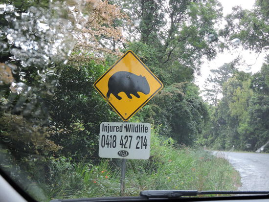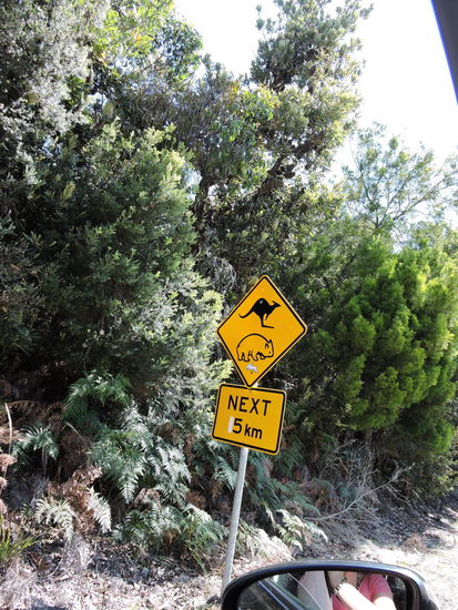 Überall sehen wir Hinweisschilder auf Kängeru's, Koalas und Wampats.