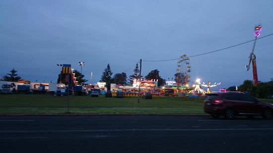 Unser Motel ist etwas außerhalb von Bateman's Bay in Batehaven und wir sehen eine kl. Kirmes mit einigen Fahrgeschäften und Buden.