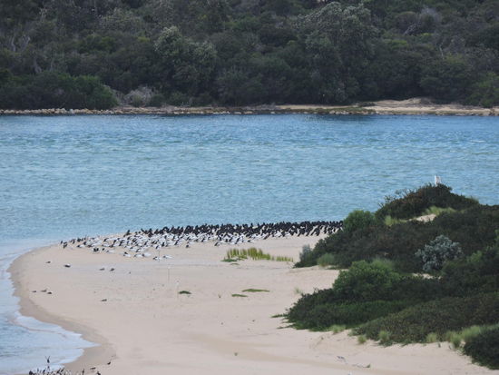 Wenig später können wir vom Auto aus die Besuchertribünen für die Pinguinparade am Abend sehen. Im Info-Center erfahren wir, dass die Show für heute Abend ausverkauft ist. Eintritt 23,00 AUD/Person. Gestern waren es 1.047 Pinguine die vom Meer zu ihren Nistplätzen gelaufen sind. Ranger kontrollieren ständig nach Füchsen - denn dies ist der gefährlichste Feind für die Pinguinbabys. (Füchse können bis zu 40 Pinguinb. in einer Nacht fangen. - tagsüber sind die Pinguine auf Nahrungssuche im Meer.