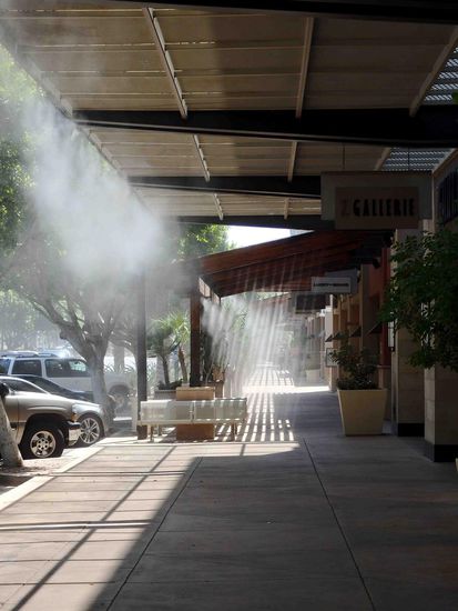 Weiter ging's zu einer Mall, die uns ein netter Doorman eines Hotels empfohlen hatte. Leider war dies nur eine "Außenmall". Faszinierend waren wieder einmal die Klimaanlagen VOR den Geschäften, die fein Wasser vernebelten um die Luft zu kühlen. Uns half dies trotzdem nicht weiter, denn inzwischen waren es schon wieder 36 °