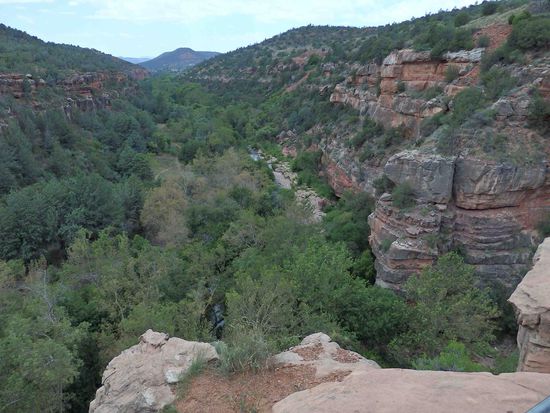Nachdem wir gestern Nacht die Barriere gegen die Zugluft der Klimaanlage noch etwas erhöht hatten und uns ob großer Müdigkeit auch irgendwann trotz der Geräuschkulisse im Reich der Träume befanden, konnten wir heute Morgen halbwegs erholt Richtung Flagstaff starten. Die Fahrt ging schnell heraus aus der Stadt und der großen Hitze, und mit jedem Kilometer wurden Temperatur und "Frische" deutlich besser. Zuerst fuhren wir Richtung Sedona. Dort beginnt schon das Indianerland mit seiner Filmkulissenlandschaft.