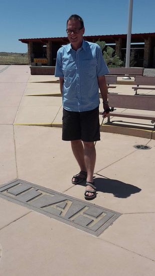 Die letzte Nacht war soooo angenehm: ohne dröhnende Klimaanlage, ja sogar ganz ohne Klimaanlage. Wir befanden uns schließlich auf 2200 m Höhe in angenehm frischer Luft. Das Ausruhen tat gut und so begaben wir uns zum Frühstück. Das Angebot toppte alle Hotels bislang, es fehlte an nichts - nur am Platz. Der Raum war viel zu klein für die vielen Gäste und so war es doch ein ständiges Geschiebe und Gequetsche. Wir haben trotzdem gut gefrühstückt und uns dann auf die längste Tagesetappe unserer Rundreise gemacht. Wir fuhren nach Moab, d. h. es lagen 530 KM vor uns. Auf deutschen Autobahnen wäre das eine andere Sache, hier war es eine gut ausgebaute Landstraße, die schnurgerade über mindestens 180 Km geradeaus führte und auf der nur 100 KM/h erlaubt waren. Na ja, es wurden dann doch oft ein paar mehr, denn wir wollten ja auch noch ankommen. Unterwegs machten wir einen Abstecher zu "Four Corner". Hier treffen die Bundesstaaten Utah, Arizona, New Mexico und Colorado in einem Punkt zusammen. Dieses Monument (so heißt das hier) liegt auf Indianergebiet und das bedeutet, wir mussten wieder Eintritt zahlen.... Unser National-Park-Pass gilt dort leider nicht. Also zahlten wir 5 $ pro Person und durften dann auf das Gelände. Dutzende von Menschen standen schon in einer Schlange nur um an den Punkt zu kommen und dort ein Foto machen zu können. Wir stellten uns natürlich auch an!