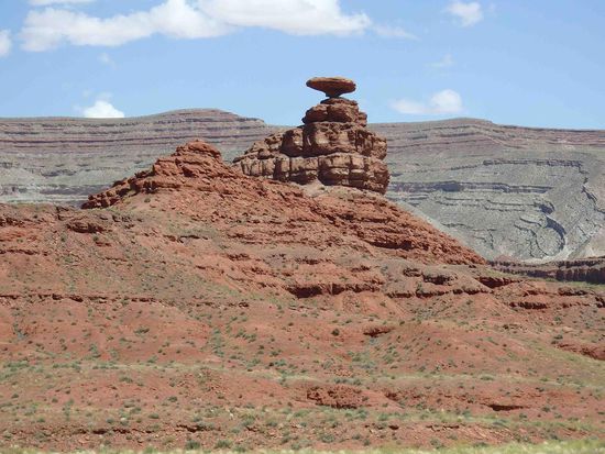 Auf dem weiteren Weg kamen wir noch am Mexican Hat vorbei, der wirklich der Kopfbedeckung täuschend ähnlich sieht.