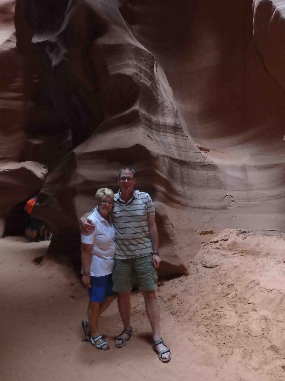 Nach relativ kurzer Fahrt - was sind schon 200 Km - kamen wir in Page am Lake Powell an. Hier liegt der berühmte Antelope Canyon. Wir hatten schon im Frühjahr Einlasskarten online bestellt und bekamen eine Zugangszeit genannt. Man darf nicht allein in den Canyon, sondern wird mit einer Gruppe durch einen Guide geführt. Leider zeigte der Himmel kein Erbarmen heute und die ersten Wolken zogen auf als wir beim Veranstalter ankamen. Es sollten noch einige mehr werden...