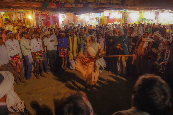 Es gibt hier eine erstaunliche Menge an Tempel und leicht verfallener Paläste, die von herrschaftlicheren Zeiten erzählen. Orchha bedeutet soviel wie "versteckt", ein Vorteil ist, dass alles zu Fuß erreichbar ist. Knapp 10000 Einwohner. Bei meiner Ankunft traf erstaunlich viel Volk ein. Wie ich später erfuhr gibt es hier öfters solche Zusammenkünfte, ein 2-tägiges religiöses Festival anlässlich der Hochzeit des Gottes Rama und seiner Frau Sita findet Ende November statt. Mit Prozession und so. Gott Rama und seine Frau werden da auch anwesend sein. Dies war ein kleineres Festival, Ich machte mich also auch auf dem Weg zum "Martkplatz" und fand auf den Stufen zu einem riesigen Tempel eine Sitzgelegenheit von wo aus ich dem Treiben zusehen konnte. Gleich gegenüber dem Ram-Raja-Tempel, den die Pilger umkreisten(?), einige sich dabei auch der Länge nach zu Boden warfen.