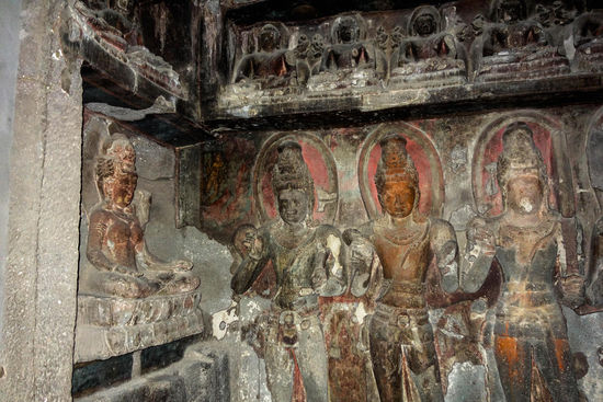 "Diese Welterbestätte in 30 km Entfernung zu Aurangabad ist der Inbegriff uralter indischer Felsenarchitektur. Über fünf Jahrhunderte lang schlugen Generationen von buddhistischen, hinduistischen und jainistischen Mönchen die Räume mühsam aus dem Fels. Die Höhlen dienten als Klöster, Kapellen oder Tempel. Zudem verzierte man sie stilvoll mit einer Unmenge bemerkenswert detailreicher Skulpturen....".