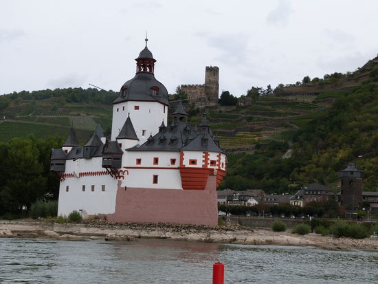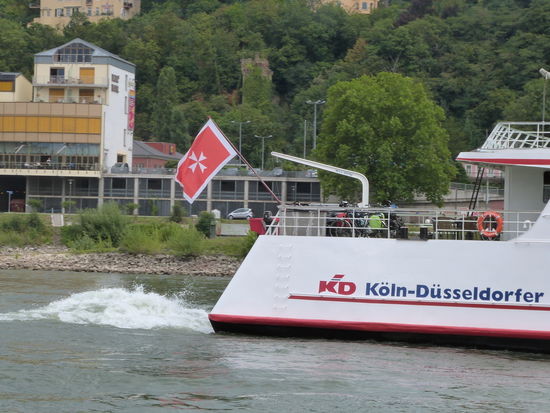 Obwohl wir die Bergstrecke schon seit Jahrzenten befahren, ist es immer wieder ein Erlebnis an den zauberhaften Weindörfern und Burgen vorbei zu schippern. Das Verkehrsaufkommen in der Bergstrecke ist wie immer enorm. Frachter, Hotelschiffe und Ausflugsboote liefern sich ein Rennen. Darunter auch das Flaggschiff der ehemaligen Köln-Düsseldorfer-Dampfschifffahrtsgesellschaft. Die "Goethe", das einzige und letzte Schaufelrad-Dampfschiff am Rhein. Erst hat die KD sie ihrer Dampfmaschine beraubt und jetzt fährt sie unter Maltesischer Flagge. Es ist eine Schande!