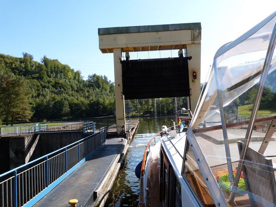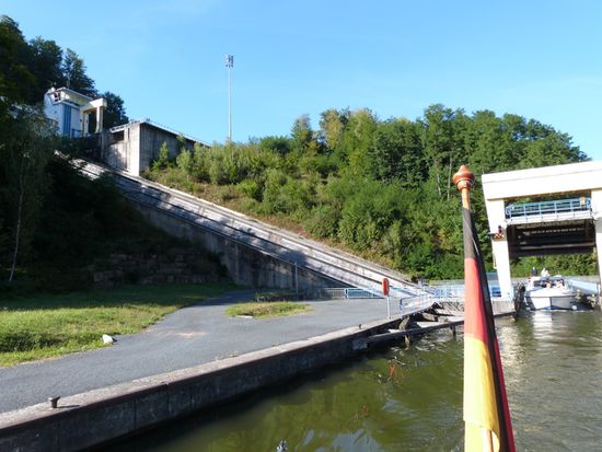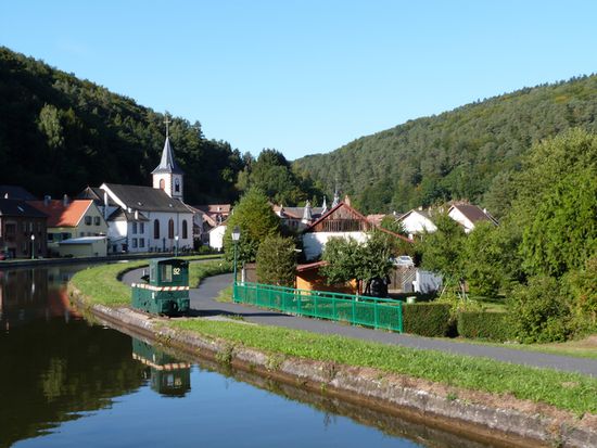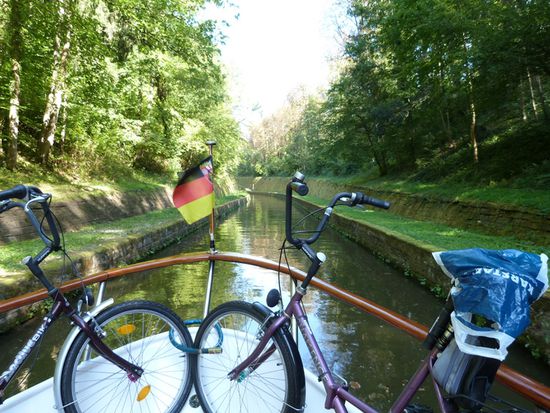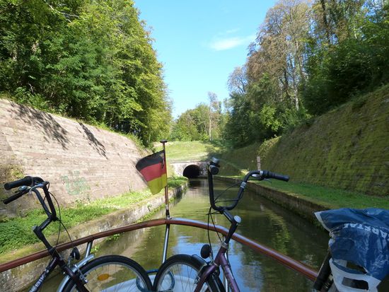 85 Kilometer, 34 Schleusen und – der Höhepunkt , der Schrägaufzug in Arzviller und zwei Tunnel - liegen vor uns, bevor wir Straßburg erreichen. Auch auf diesem Kanal gilt: Ruhe ist die erste Bootsfahrerpflicht. Es sind sehr, sehr viele Charterboote unterwegs. Manchmal ist es schon erbauend ihnen zuzusehen, doch als eines beim Ausfahren aus einer Schleuse mit Vollgas vorwärts und Vollgas rückwärts Manövern dem von mir verliehenen Namen „Bumsboot“ alle Ehre macht und Rammkurs auf uns hat, muss ich sie doch ermahnen, dass sie nicht auf der Flucht, sondern im Urlaub sind und Zeit haben…