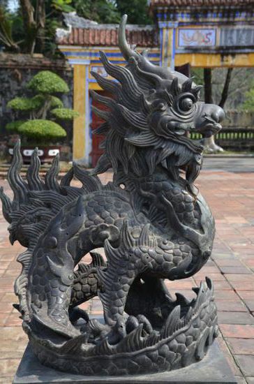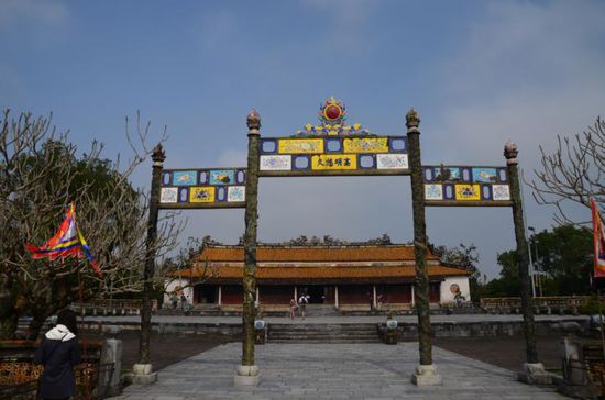 Unser Weg führte uns unfallfrei zur Zitadelle. Sie ist DIE Sehenswürdigkeit in Hue und soll dem Königspalast/der Verbotenen Stadt in Peking nachempfunden sein. Ein Teil ist leider in ziemlich schlechtem Zustand und stellenweise verfallen, aber es wird fleißig restauriert und es sind bereits sehr schöne Gebäude entstanden. Das Wetter war auch mit uns und wir wanderten gemächlich bei fast blauem Himmel und mit Sonnenschein durch die Anlage. Eine ungewohnte Stille und herrlich frische Luft herrschte dort und wir hatten keine Eile diesen Ort so schnell wieder zu verlassen.