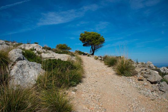 Eine leichte Wanderung, zuerst auf breiten Wegen, später auf schmalen Küstenpfaden. Laut Beschreibung geht es zuerst durch Feldterrassen und dann durch Kiefernwälder. Da wir zu Mittag bei 28 Grad gestartet sind haben wir auf Schatten im Wald gehofft - der war aber zur Gänze abgebrannt. Am Ende der Wanderung erwartet uns an der Küste der Mirador d `en Josep Sastre, auch Teufelskanzel genannt. Dieser Aussichtspunkt am Cap Fabioler schwebt fast senkrecht über dem Meer. Wenn wir nach links blicken sehen wir die Insel Sa Dragonera und das weite Hochtal von La Trapa. Sehr schön...