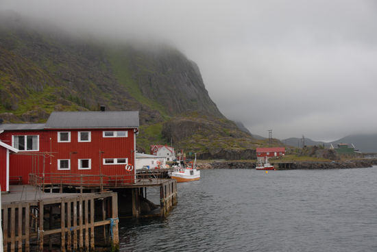 Auf den Lofoten haben wir leider kein Wetterglück – es regnet jetzt zwar nicht mehr, aber wir haben keine freie Sicht auf die Berge.