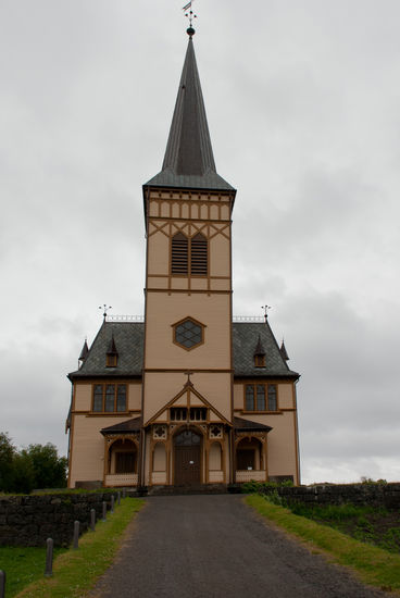 Begonnen haben wir in Svolvaer. Dort besuchen wir die Vagan Kirke (Lofoten Kathedrale), eine riesige Holzkirche die aber erst zu Mittag aufsperrt. So ein Pech bei diesen Eintrittspreisen… Dafür machen wir einen ganz netten Spaziergang durch das Städtchen, bekommen einen hervorragenden Cappuccino und sehr gutes Plundergebäck.