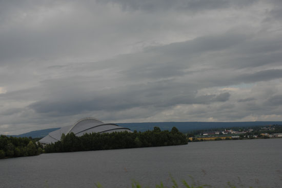 Zuerst besuchen wir die Viking- Olympiasporthalle (Winterolympiade 1994). In dieser Anlage finden ca. 13 000 Zuschauer Platz, das ist etwa die Hälfte der Bevölkerung Hamars. Die Sporthalle sieht wie ein auf den Kopf gestelltes Wikingerschiff aus.
