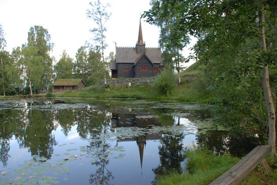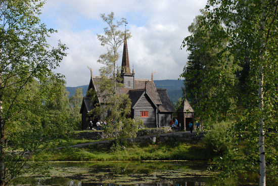 Um 9:00 sind wir bereits in Lillehammer und besichtigen Maihaugen. Das ist ein Freilichtmuseum wie unser Stübing und öffnet erst um 10:00. Macht aber nix, denn man kann trotzdem durchspazieren und es ist sehr nett ohne Touristen. Hier kann man alte Bauernhöfe aus dem Gudbrandstal besichtigen und die Stabkirche von Garmo (um 1200).