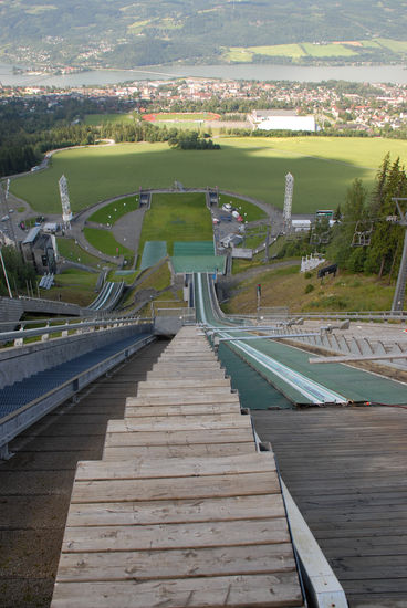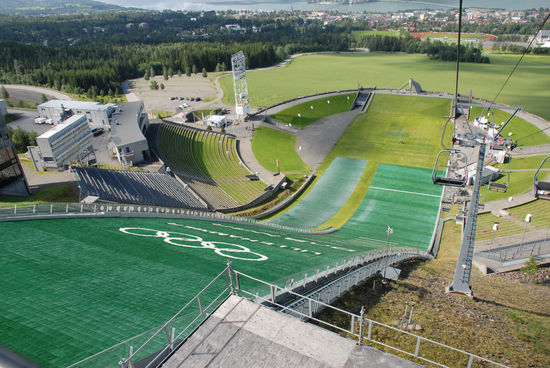 Weiter geht´s dann zur Lysgardsbakkene. Die Sprungschanze ist natürlich das Wahrzeichen von Lillehammer. Wir fahren mit dem Sessellift (um € 14,- für 2 Personen) rauf und werden mit einem tollen Ausblick belohnt.