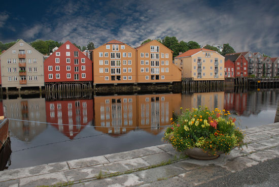 Anschließend bummeln wir noch durch das Städtchen, vorbei an den schönen alten Speicherhäusern. Das sind Pfahlbauten, die liebevoll restauriert wurden und unter Denkmalschutz stehen. Ein schönes Fotoplätzchen ist die alte Zugbrücke „Brybrua“, die früher der einzige Zugang zur Stadt war.