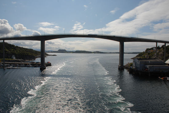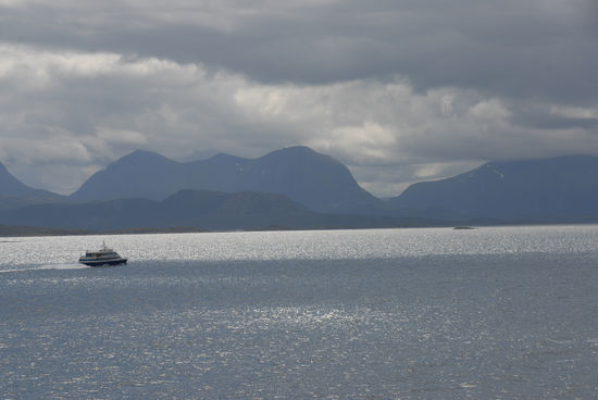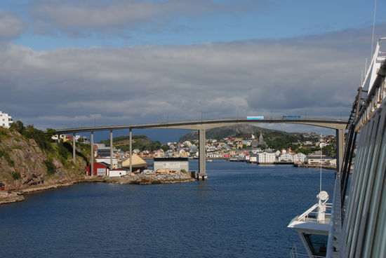 Unser Schiff fährt durch die Trondheimrinne, legt in Kristiansund, Molde, Alesund und Florö an und gleitet an der breiten Mündung des Sognefjords vorbei, bis wir schließlich noch durch das Insel- und Schärenreich vor Bergen gleiten und schließlich um 14:30 in der Hansestadt anlegen.