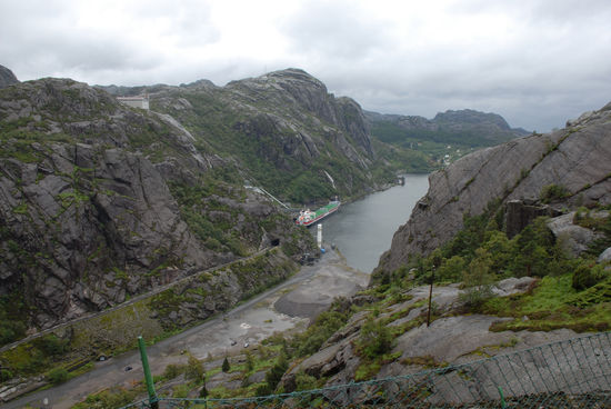 Um die Mittagszeit kommen wir bei Hauge (kleines Ferienzentrum) vorbei und dann wird das Tal immer enger, teilweise ist es nur 50 m breit und wird rechts und links von riesigen blanken Felsformationen eingegrenzt.
