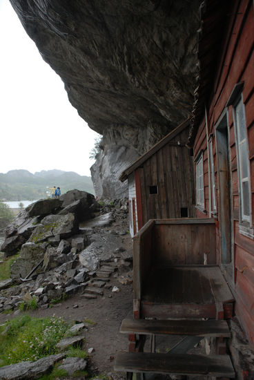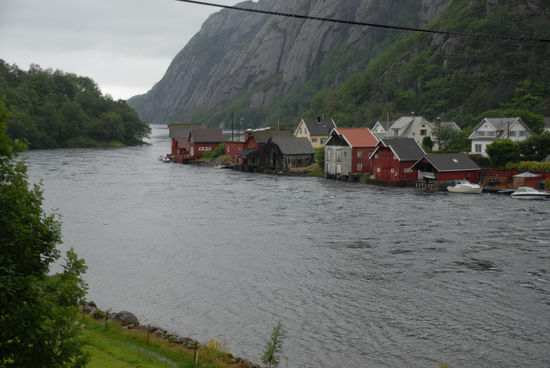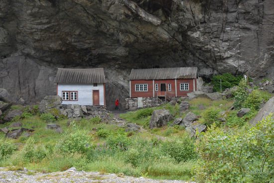 Am Jossingfjord machen wir einen kurzen Fotostopp. Gleich danach stehen wir vor dem trolligsten, kleinsten Dorf Norwegens: Helleren – zwei Häuser, geschützt durch einen riesigen Felsen. Diese „Siedlung“ war bis 1920 bewohnt und gehört sicherlich zu den häufigsten Fotomotiven.