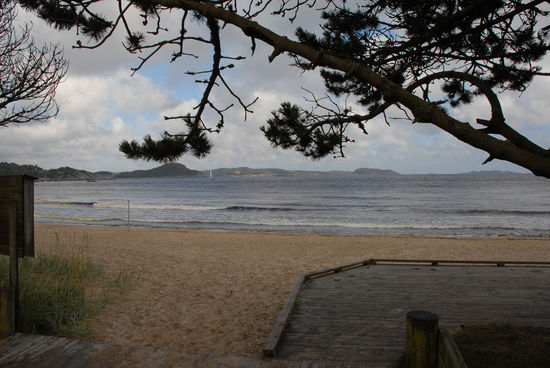Wir beziehen das First Hotel Solborg, das leider schon bessere Zeiten erlebt hat, und spazieren im Anschluss durch das 14 000 Einwohner zählende Städtchen. Nichts Aufregendes, nur klein und weiß. Der Strand ist da schon schöner und es scheint auch wieder die Sonne. An der „norwegischen Riviera“ gibt´s herrlichen Sandstrand und Pinienhaine und es gibt sogar ein paar Mutige im Wasser.