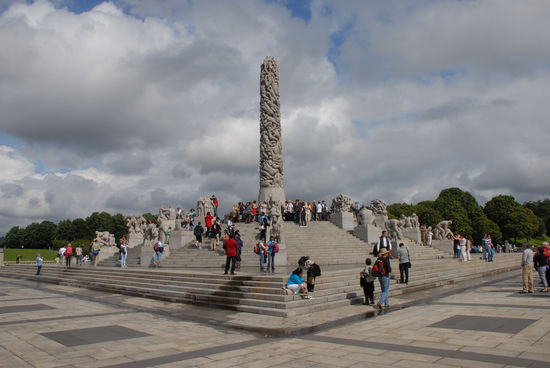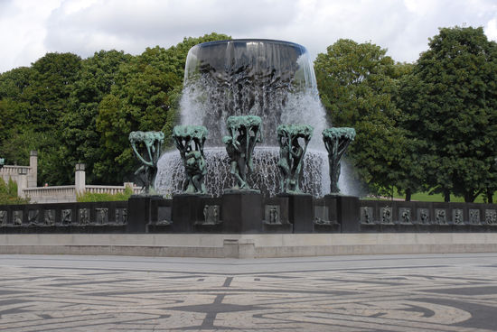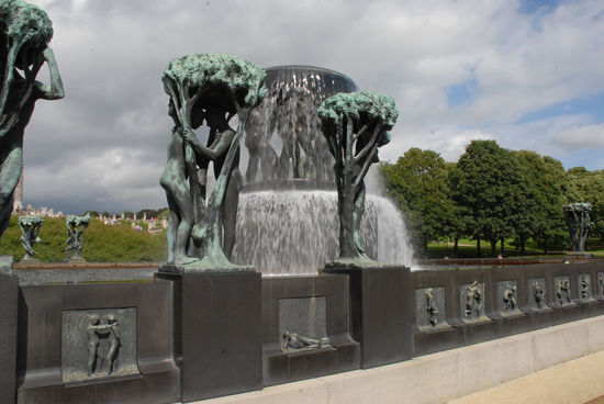 22 Jahre hat Gustav Vigeland (1869 – 1943) an diesen Figuren gemeißelt. Es sind rund 200 Skulpturen mit etwa 650 Figuren die alle Lebenslagen darstellen, von der Kindheit bis zur Ruhe des Alters.