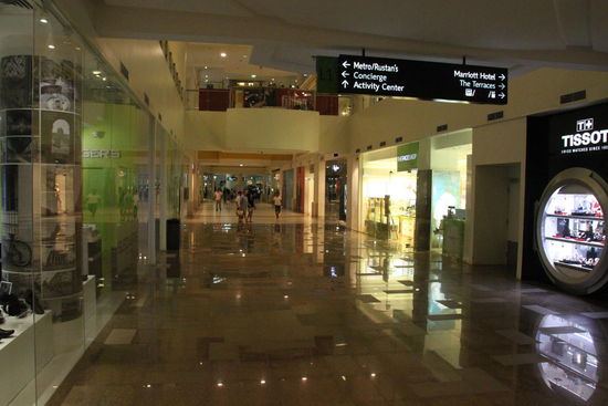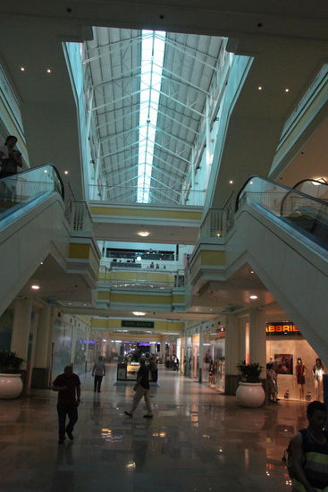 Mein Sightseeing heute Mittag beschränkt sich auf das Ayala Center und den dazugehörigen Terrassen. Die sind das Gegenstück zum Greenbelt in Manila. Dem Center sieht man von außen gar nicht an, dass sich hier überhaupt etwas verbirgt. Das einzige gut sichtbare ist der Metro Supermarkt und der ist riesig. Alles andere sieht wie eine unscheinbare Aneinanderreihung von nichtssagenden Gebäuden aus. Innen ist dafür alles umso edler. Die ganze Mall ist mehr oder weniger wie ein halbes Rad aufgebaut, rund mit Speichen die in einer Mitte zusammen laufen. Das Ganze dann auf vier Stockwerken mit Anbauten an beiden Enden und den Terrassen entlang der Längsseite und gegenüber noch einmal im Halbkreis. Auch die Kneipen und Restaurants sind durchweg hochklassig und entsprechend auch hochpreisig.