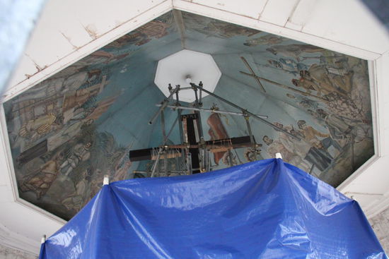 Quasi zum Hinterausgang raus steht man auch schon vor dem Maggelan Kreuz, von dem ich aber nicht viel gesehen habe weil es sozusagen eingepackt war.