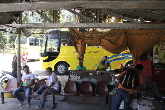 Nach dem Auschecken muss ich fast eine Stunde warten bis ein Bus nach Hinoba-an, dem nächsten Ort kommt, wo ich umsteigen muss. Angenehm ist, das ich in der Hotellobby warten kann, weil der Bus vor dem Hotel hält. Er braucht dann nie knappe Stunde und die Fahrt kostet 33 P. Auf dem wenig aufregenden Busbahnhof dort muss ich wieder eine gute Stunde warten, obwohl ein Bus aus Dumaguete schon nach 10Minuten auftaucht der auch dorthin zurück fährt.