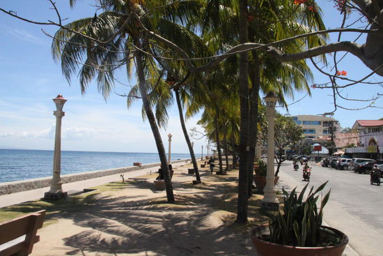 Dumaguete gefällt mir schon beim rein fahren. Eine quirlige kleine Stadt. Das Tryclo zum Hotel kostet mich 50 P, was vermutlich zu viel ist, aber mein Vorschlag war. Das Hotel Nicanor wirkt recht modern und liegt nur ein paar Meter von der Promenade entfernt. Ein Zimmer mit zwei Einzelbetten hätte 1000 P gekostet. Jetzt zahle ich 1300, habe ein Kingsize Bett aber dafür leider nur ein Fenster zu einem Innenschacht, durch den auch die AC geht und die schwüle Luft direkt ins Bad geht. Das Zimmer ist so schwül, das die AC Mühe hat, es herunterzukühlen.