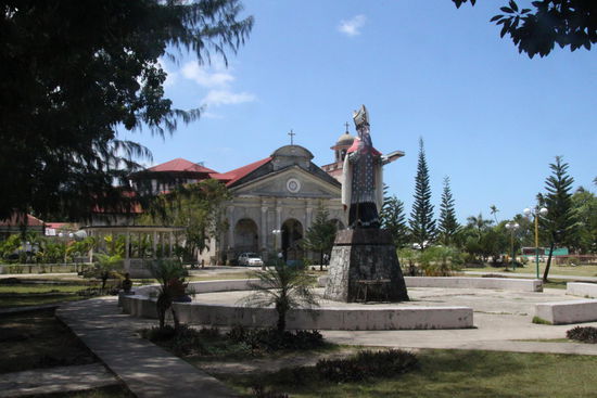 Zu den Chocolate Hills ist es mir gefühlsmäßig mit meinem kleinen Roller zu weit. Da besuche ich lieber die Badeinsel Panglao vor der Haustüre sozusagen. Die ist immerhin auch 18 Kilometer lang. Mit Aufenthalten ein netter Tagesausflug. Bei der Gelegenheit, trotz dem eher schlechten Wetter gestern und obwohl ich jetzt schon fast drei Wochen hier bin, habe ich mir gestern an den Armen den zweiten Sonnenbrand nach Boracay geholt. Folglich hat die Sonne heute schon nach wenigen Kilometern angefangen, meine Arme zu malträtieren. Da hat aus Sonnencreme nix genutzt. Mal sehen wie die heute Abend aussehen. Mein erster Stopp fällt (ungeplant) auf Panglao, weil das schlicht die erste Ansiedlung auf meiner Strecke ist. Gleichzeitig ist dies der südlichste und namensgebende Ort der Insel. Überrascht bin ich von der großen und recht schönen Kirche hier. Von diesem Ort sollen auch die Walbeobachtungstouren losgehen.