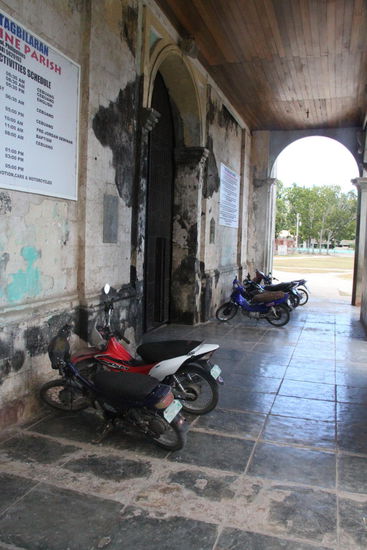 Ich mache mich auf den Rückweg und suche in Loon die alte Kathedrale. Die ist ebenfalls Opfer des Erdbebens geworden und wohl so, dass ich auch die Überreste nicht finden kann. Dann suche ich in Maribojoc nach dem alten Leuchtturm, kann den aber auch nicht finden. Zwischendrin fängt es immer einmal leicht an zu Regnen. Ich frage zwei Leute die nur die Achseln zucken. Dann schaue ich auf einen Plan, den ich vom Rollerverleiher bekommen habe und laut dem müsste ich wieder ein paar Kilometer zurück nach Norden fahren. Darauf habe ich keine Lust. Also zurück ins Hotel, zumal mir von der schmalen Sitzbank der Hintern weh tut obwohl ich gerade einmal vielleicht 80 Kilometer oder so gefahren bin.