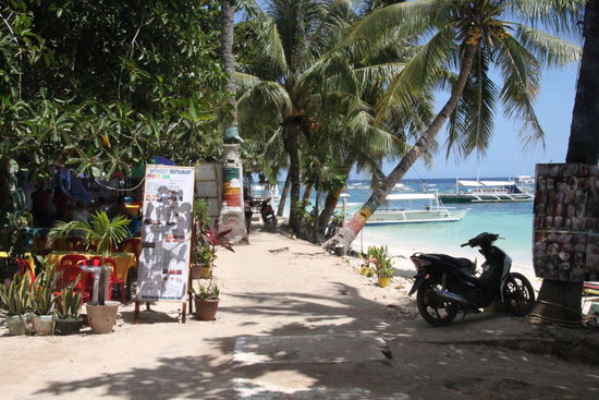 Ich mache mich auf den weiteren Weg nach Alona Beach, dass ich nach wenigen Minuten erreiche. Ein weiteres Mal bin ich überrascht. Das ist hier ein richtig angenehmer kleiner Badeort. Genau richtig um ein paar Tage zu relaxen. Das was Peters für Sipalay vorschlägt. Die Kehrseite sehe ich, als ich an den Strand komme. Der ist zum einen sehr klein und dann schreibt Peters ja schon, das man nur wenige Meter ins Meer laufen kann, dann kommt Seegras in dem bevorzugt Seeigel und ähnliches hausen, auf die man besser nicht treten sollte. Also wenn, dann gleich nach einer Unterkunft mit schönem Pool schauen.