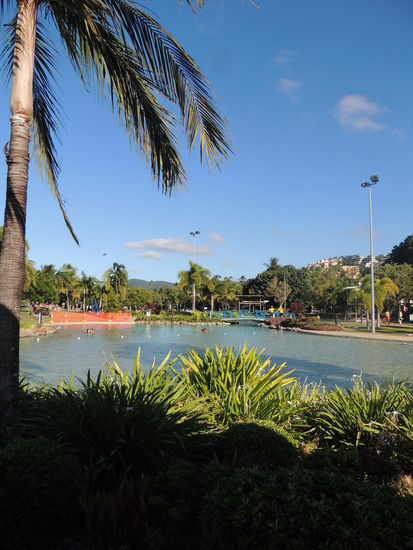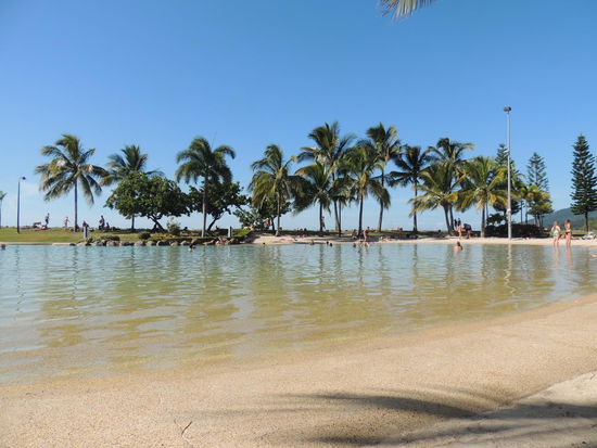 Airlie Beach hat eine tolle Promenade mit Palmen, Strand, Grasflächen und einer Öffentlichen Lagune. Sieht einfach klasse aus und man kann sich ins Wasser legen und abkühlen. Viele junge Leute sind hier und bräunen sich in der heißen Mittagssonne. Leider waren auch viele Deutsche da und haben die ganze Lagune unterhalten. Ich hielt mich dort eine ganze Weile mit schwimmen, sonnen und gucken auf.